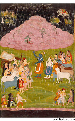 And this is where you’re going wrong! I’ve tried explaining this to you. Let me try, this time with an example. This uses the Krishna Govardan conversation from the Bhahadgavita. I would have thought you know that Indra is a Rig Vedic God, in fact the main Rig Vedic God of the Vedic (ancient Paki) people. In this scene from the Gita, Indra (who’s the God of Storms) is angry with a group of cow herders for preventing sacrifices to him so to punish them he reign torrents of rain on them for a week. Krishna though came to the rescue of them and raised a mountain above the herders and herd with his finger to protect them. The elephant in the background is Indra descending from the skies to admit defeat before Krishna (a Dravidian God). Now, tell me, would the Vedic Pakis have accepted a writing of their main God Indra defeated by a Dravidian foreign God, Krishna and then have him grovelling before Krishna? No way is the answer.