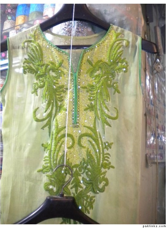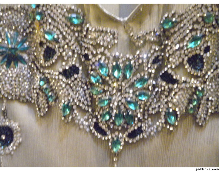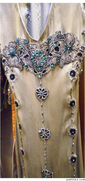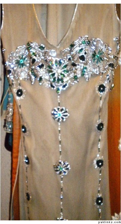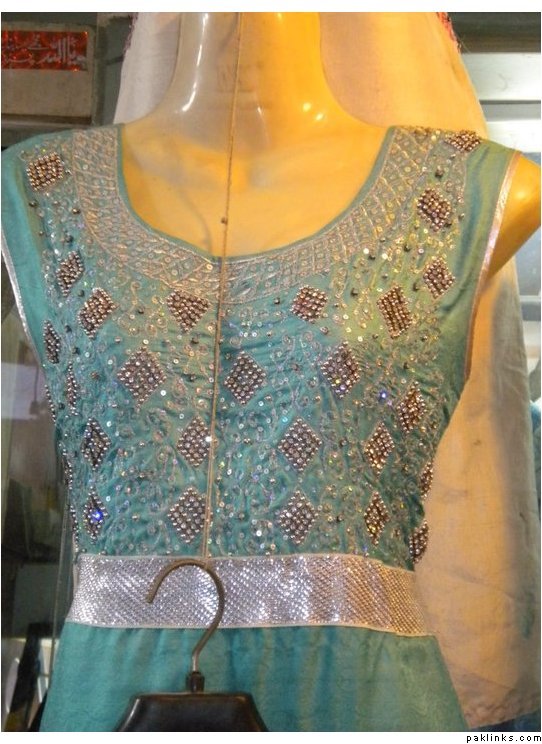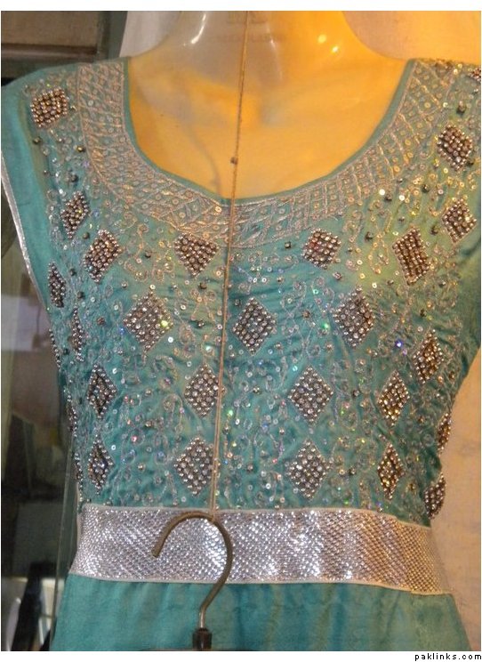 outfit 2 : beautiful emerald stone dress… includes stitching , sleeves can be added , 3 piece outfit for Pkrs 9500 only.