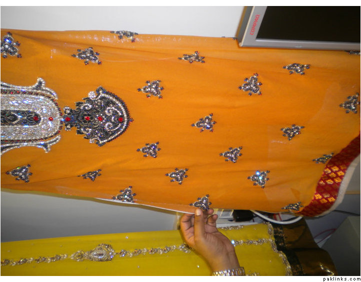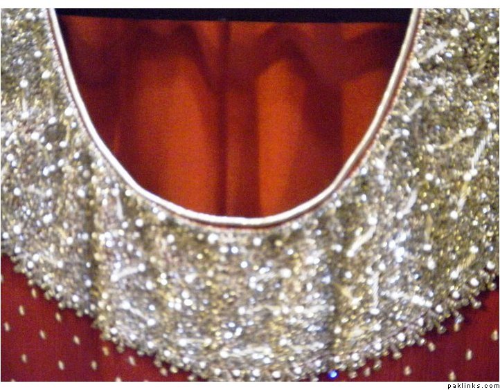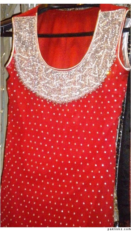 outfit 3 : beautiful red dress Pkrs 12.500 only , intricate kaam with diamonties and spray all over… includes stitching…sleeves can be added and color can be changed to your wishes…