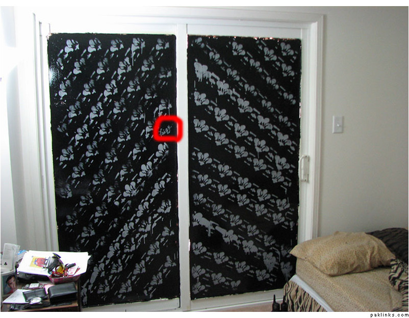the pattern was made with another project-roller, had embossed 'shaheen scout' design on it .. paint was mixed with gray and existing black ...