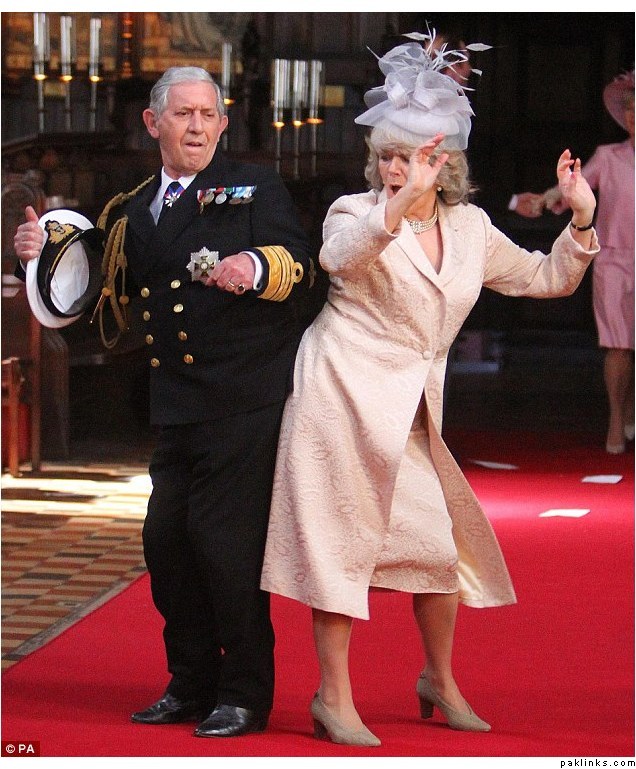 ‘William’ has features nothing like the Prince he imitates but ‘Camilla’ looks just like the the real Duchess of Cornwall - albeit in poses we are unlikely to ever see Charles’ wife in.**