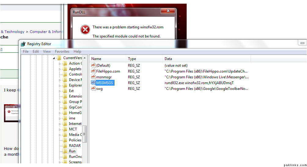 ^^ thankx for the help so far ..and i ve downloaded the cleaner also ..ran it .. all the errors have been fixed according to the cleaner .. but once i restart the laptop .. the above RunDLL above snapshot still appears …