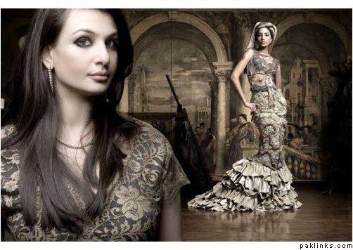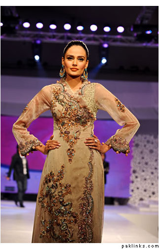Serving classic fashion on her platter, Saadia Mirza presents a collection to remember. A soft, creamy color palette infused with the glamor of dramatic dresses made to order for princesses of our time.