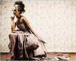 she seems to be sliding off the sofa.
