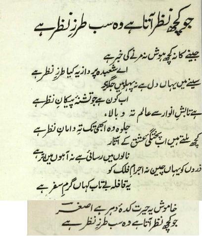 Re: sab tarz-e-nazar hai…AsGhar GonDvii