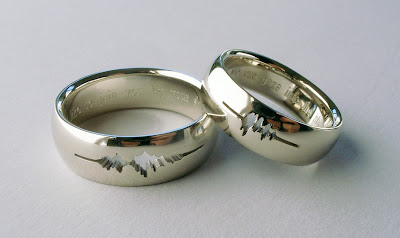 A couple had their wedding rings engraved with a waveform of their own voices saying “I do.”