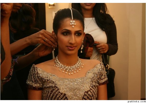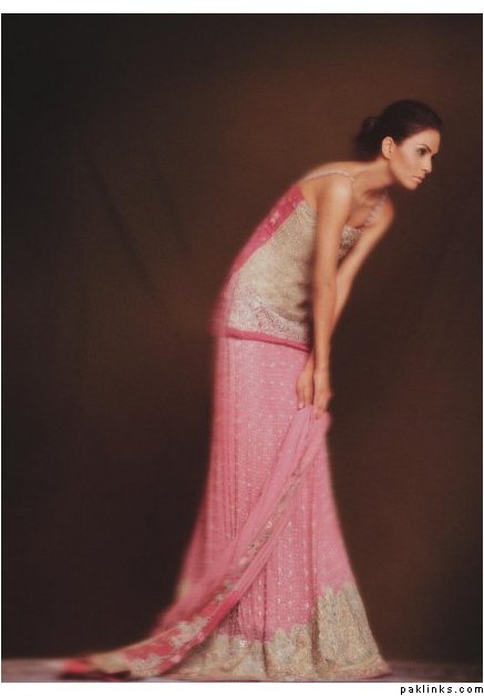 Went to their Karachi studio last month - place was swarming with ladies (like 25-30 women) in this small studio at one time. I wanted to consider them for a valima jora and they had some amazing creations in their studio. They were doing long sleeveless shirts with slips paired with lenghas and flared pants (possibly dhaka pyjamas?). They have these designs in the new 'Dulhan' and 'Libas' magazines, published recently. The colours were pretty intersting - they had a gorgeous ferozi lengha made with a gold net shirt (very delicate kaam), a couple of bridals in fuschia and one in grey net and emerald that was complete wow!