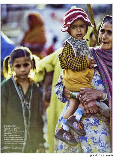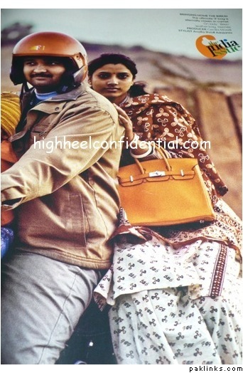 I am all for creative licenses, but I must admit, this ad hit a low for me. I find it lame and insensitive. I had already made up my mind not to give in to the hype and shell out $100+ for designer lawn suits this year, and this ad campaign just solidifies my stance. I think it's extremely stupid to do an add for lawn dress against a backdrop of LV luggage (or with an hermes bag as with Asim Jofa)...I am all for promoting Pakistani labels, and was ecstatic when Shireen Obaid Chinoy wore Bunto at the Oscars, but this, to me, is just trying to hard.