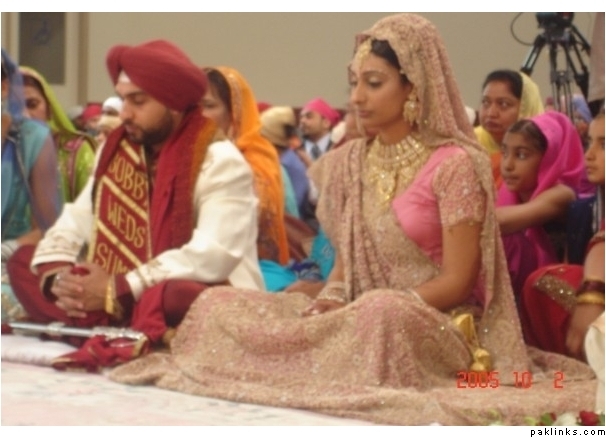 the first bride in the pale pink looks really good in her outfit. i think the dupatta and sari should both be soft, flowy material. if its stiff at all, it ain't gonna look good.