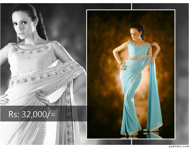 But i think in Pakistan very very few women wear sarees. In fact in one of the morning shows on ARY the host was saying that saree is not a Pakistani dress ( as it is thought to be a hindu outfit as declared during the time of Zia ). So it could be because of the rarity of the product.
