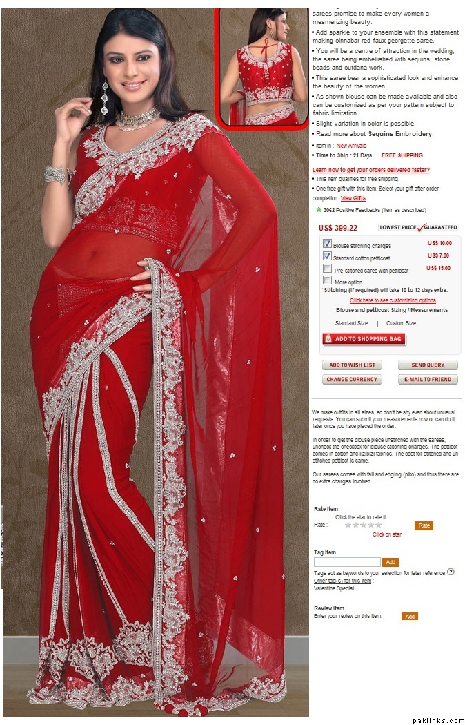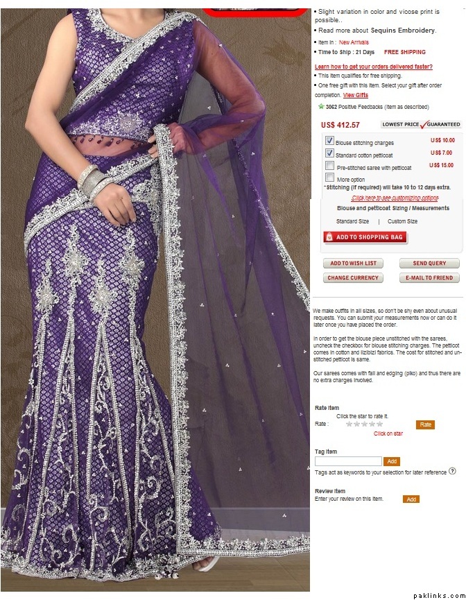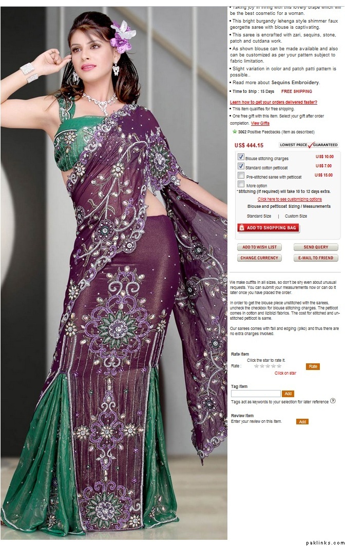 I don't know any shops that sell Pakistani sarees though....if u buy from a vendor, it depends on vendor too...there's one kind of saree I'm looking at and I've gotten different quotes from different vendors