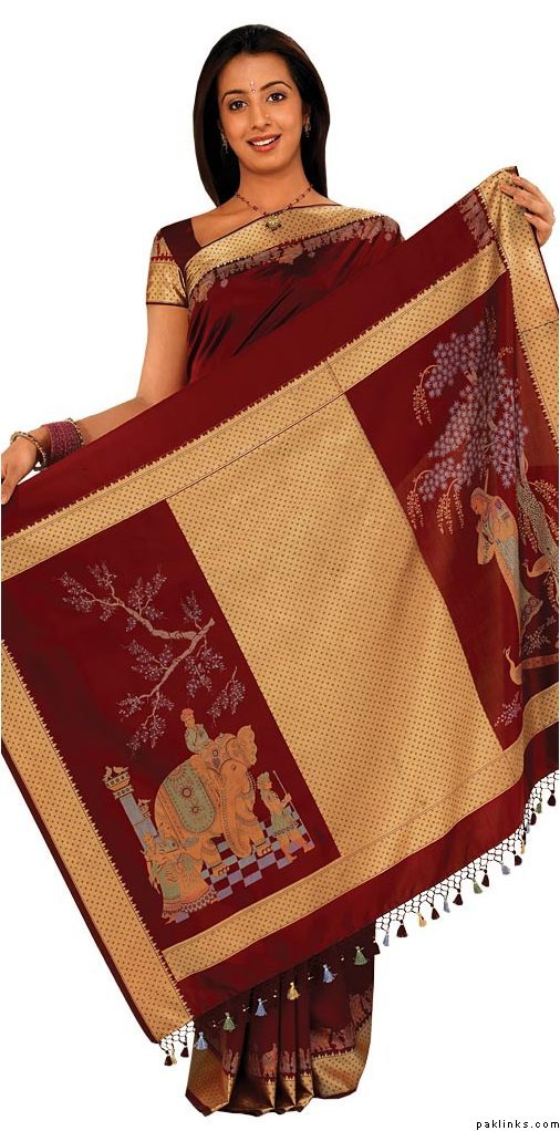 ewww those saris are kinda fugly. the first one has an elephant and a whole baraat printed on it! some of them have mosaics on them u know the motifs used on mughal palaces and shahee qilaaas!
