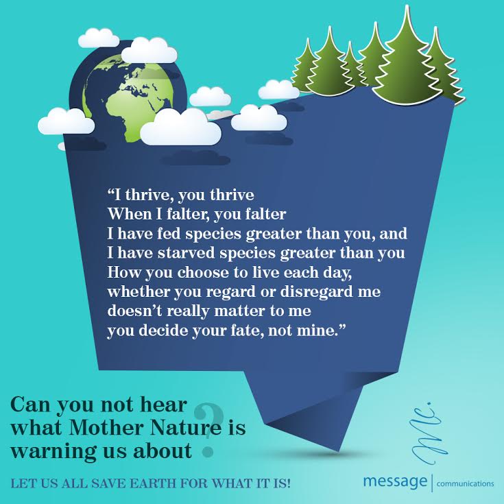 To save our mother nature we have to unite ourselves. Stop polluting the environment and grow more and more trees. yes! this is the only way in which we protect our earth. If you afford a little more then you can use CNG in our vehicles in place of petrols and deasels. Turn off the engine at traffic jam and signal. Encourage every one to participate in campaign like** Van Mohtsav** . You have to plant individually more trees in your house and in your locality.