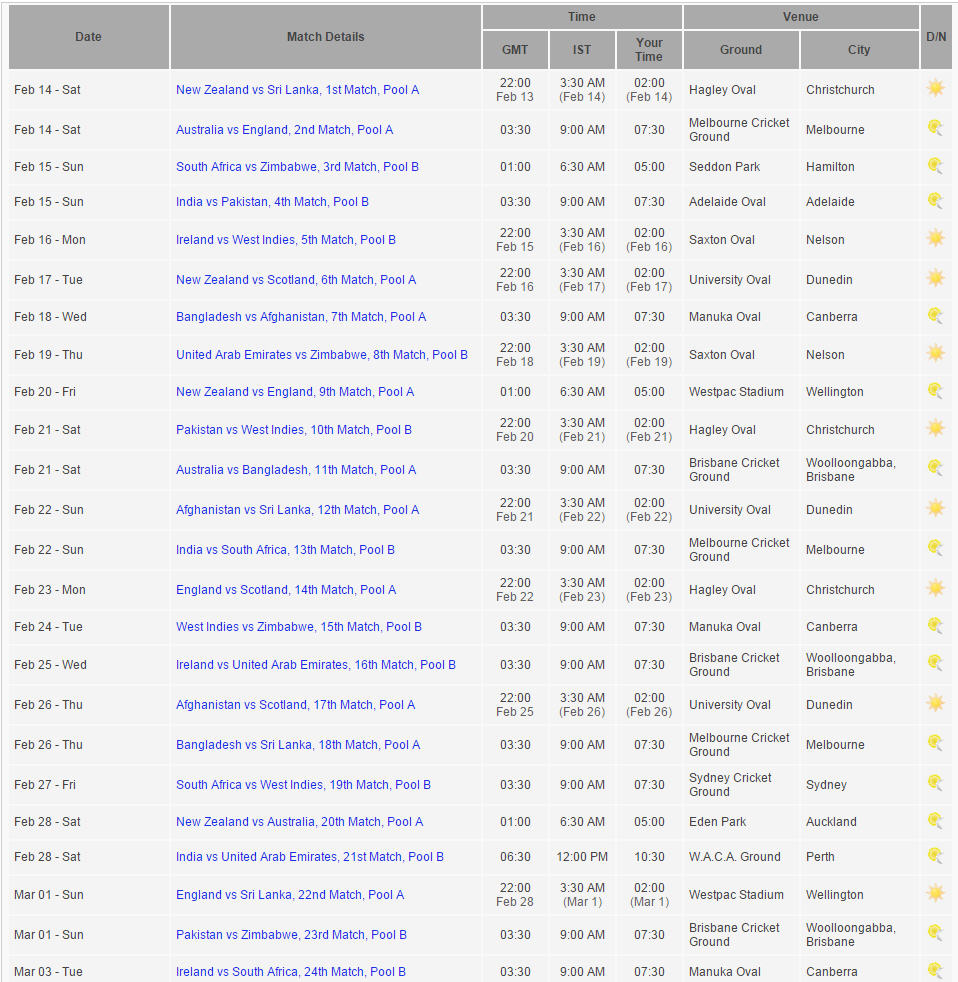 Re: Schedule of ICC Cricket World Cup 2015