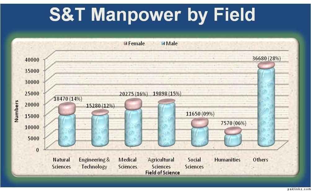 The current S&T status in Pakistan isn’t perfect, there are many flaws. They lack human and financial resources as well as proper, up-to-date infrastructure. Males still dominate the world of S&T, Pakistan needs to introduce some schemes to attract more females to this field. R&D expenditure, when compared with other countries, is very low: