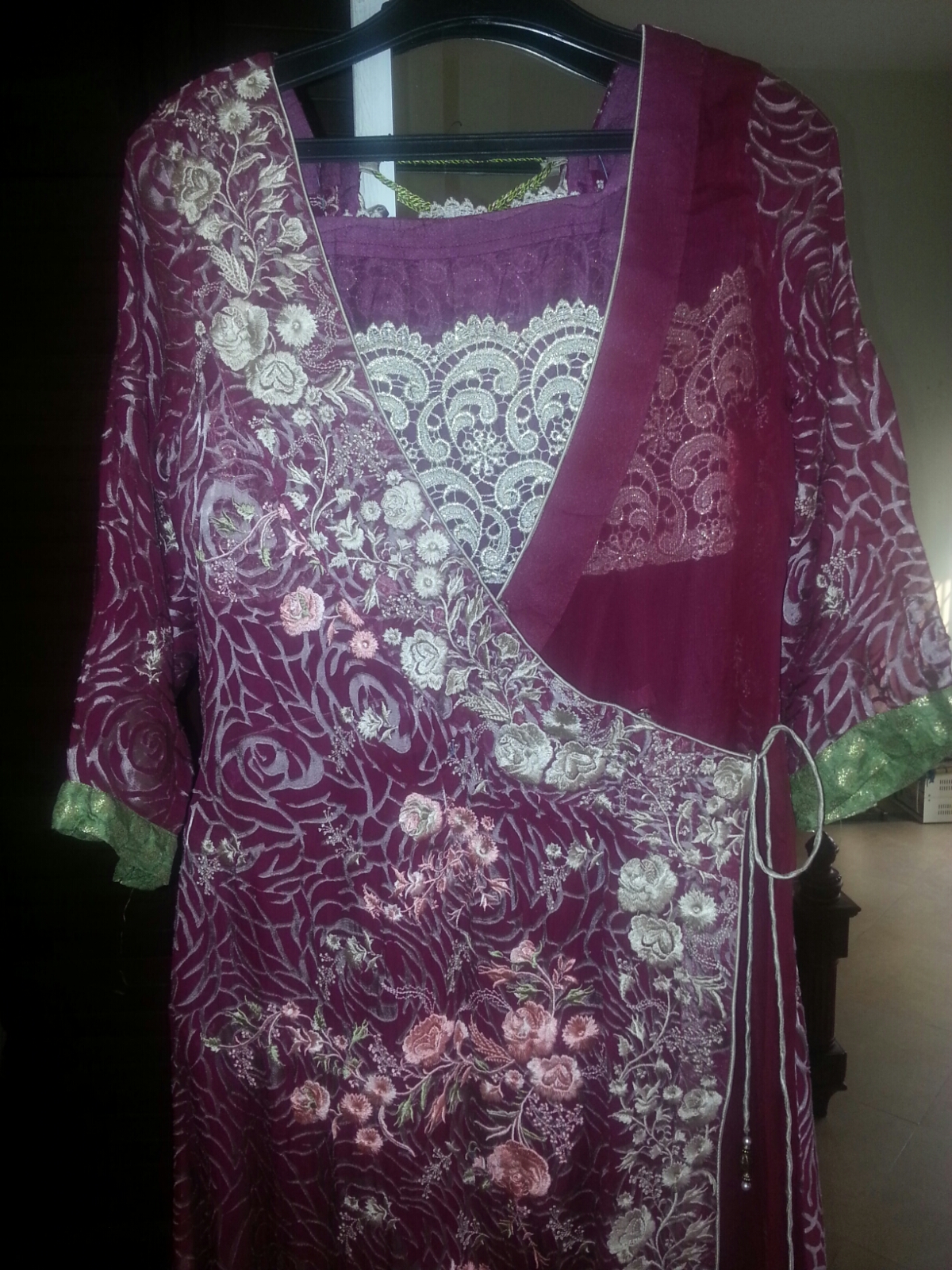 Some info...it is a lengha with short shirt, very heavy kaam on lengha and dupatta. The color is aqua.