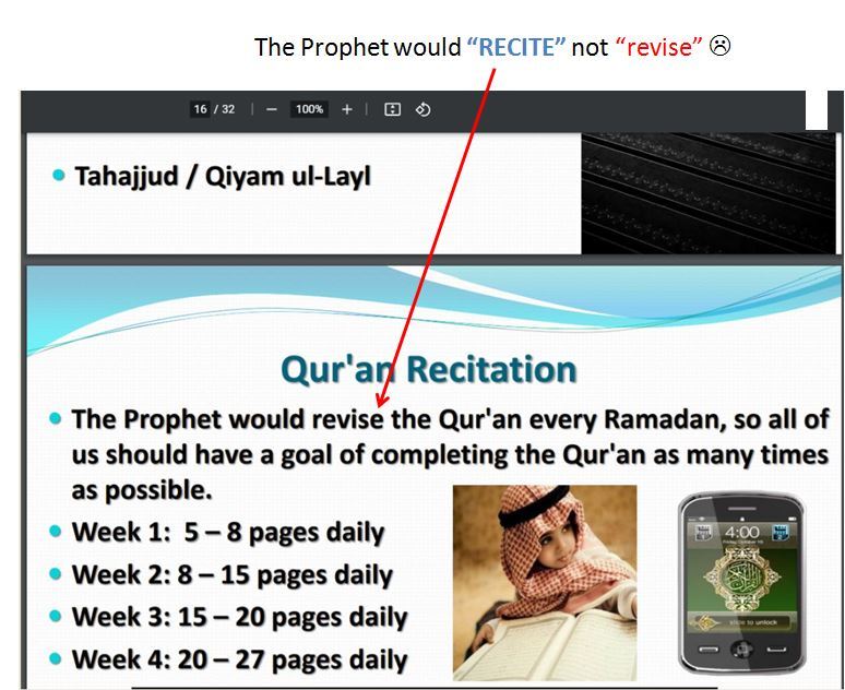 so the word used by Ashton Mosque in one of their Ramadan Guides was “REVISE”, where as I felt they should use the word “RECITE” instead…![]()