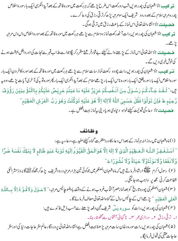 In another Hadith it is reported that’'the hearts of believers who keep alive the two nights of Eid and the fifteen nights of Shabaan,ie by engaging in Zikar of Allah,will not experience death on that day when every heart will be dead.