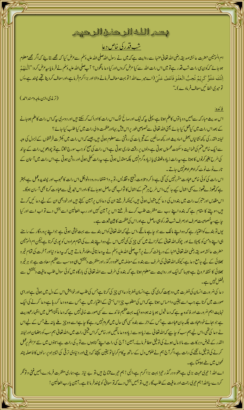 Re: Shab-e-Qadar ki khaas dua