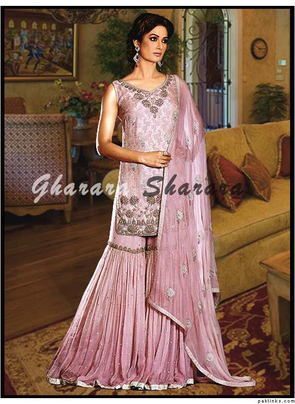 A crepe silk gharara would have just one layer of fabric that has been worked upon. A georgette chiffon would have two layers (the linning and the georgette chiffon worked layer). It depends upon you which type you want.