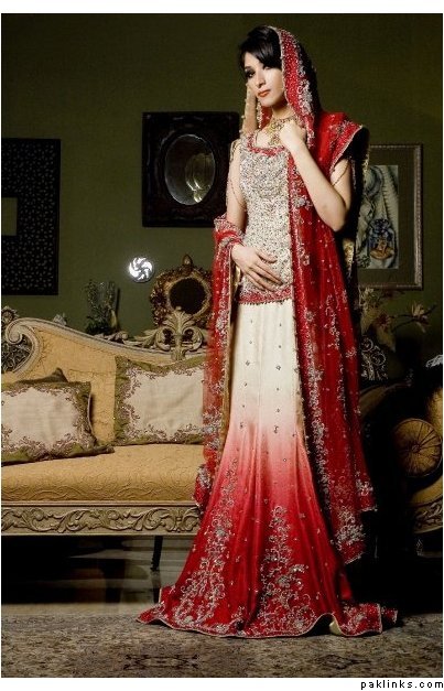 The colour change I mentioned above would be kind of similar to the white/red lehnga below.