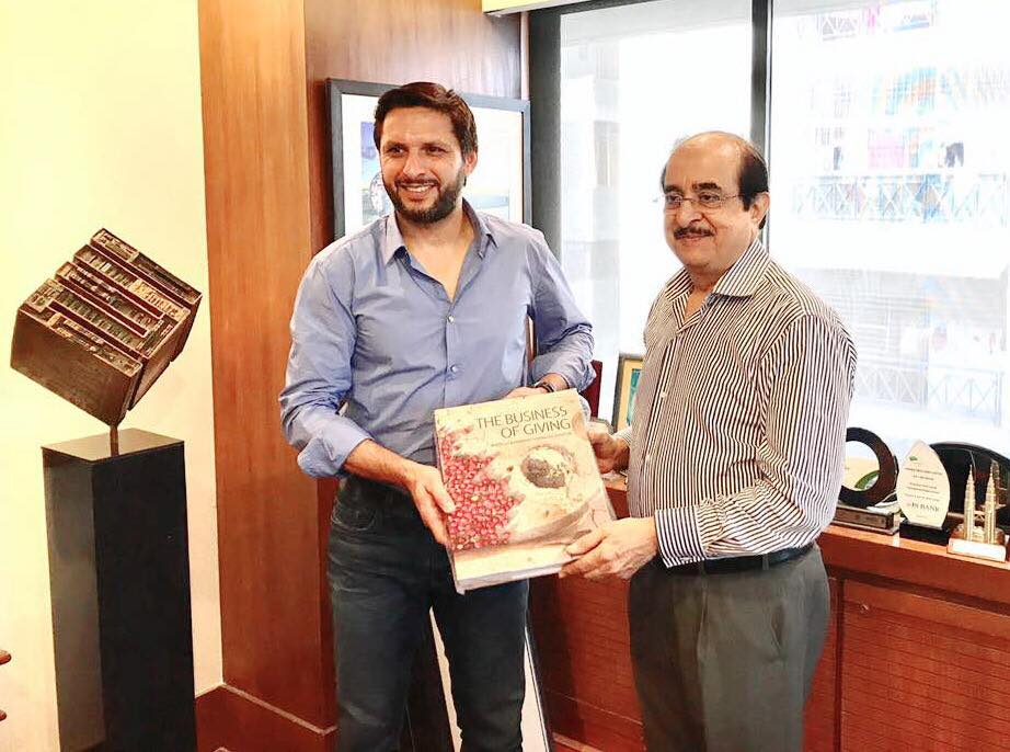 Shahid Afridi says Great meeting Jahangir Siddiqui & Kamran Nasir of JS Group endorsement to SAFoundation vision & pledge is encouraging to ensure their support.