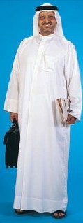 *Most Emirati males prefer to wear a kandura, an ankle-length white tunic woven from wool or cotton, and most Emirati women wear an abaya, a black over-garment covering most parts of the body.Western-style clothing is, however, dominant because of the large expatriate population, and this practice is beginning to grow in popularity among Emiratis