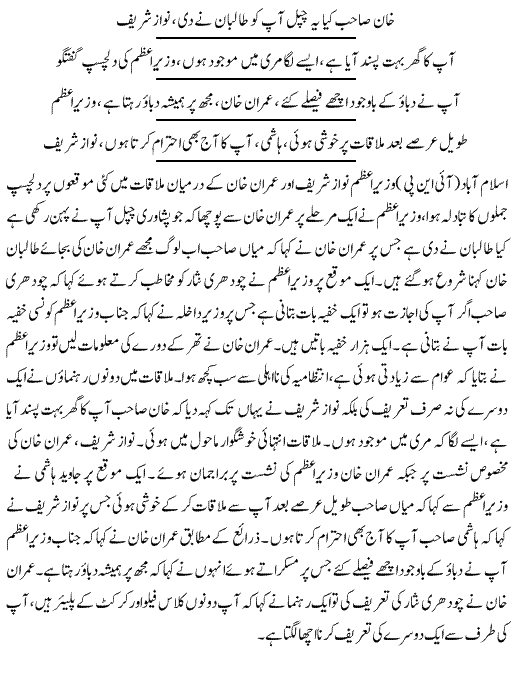 After the hour-and-a-half long ‘serious’ and ‘friendly’ meeting, Imran said, “The Pakistan Muslim League-Nawaz government is the first in the last 12 years which is seriously working to establish peace.”