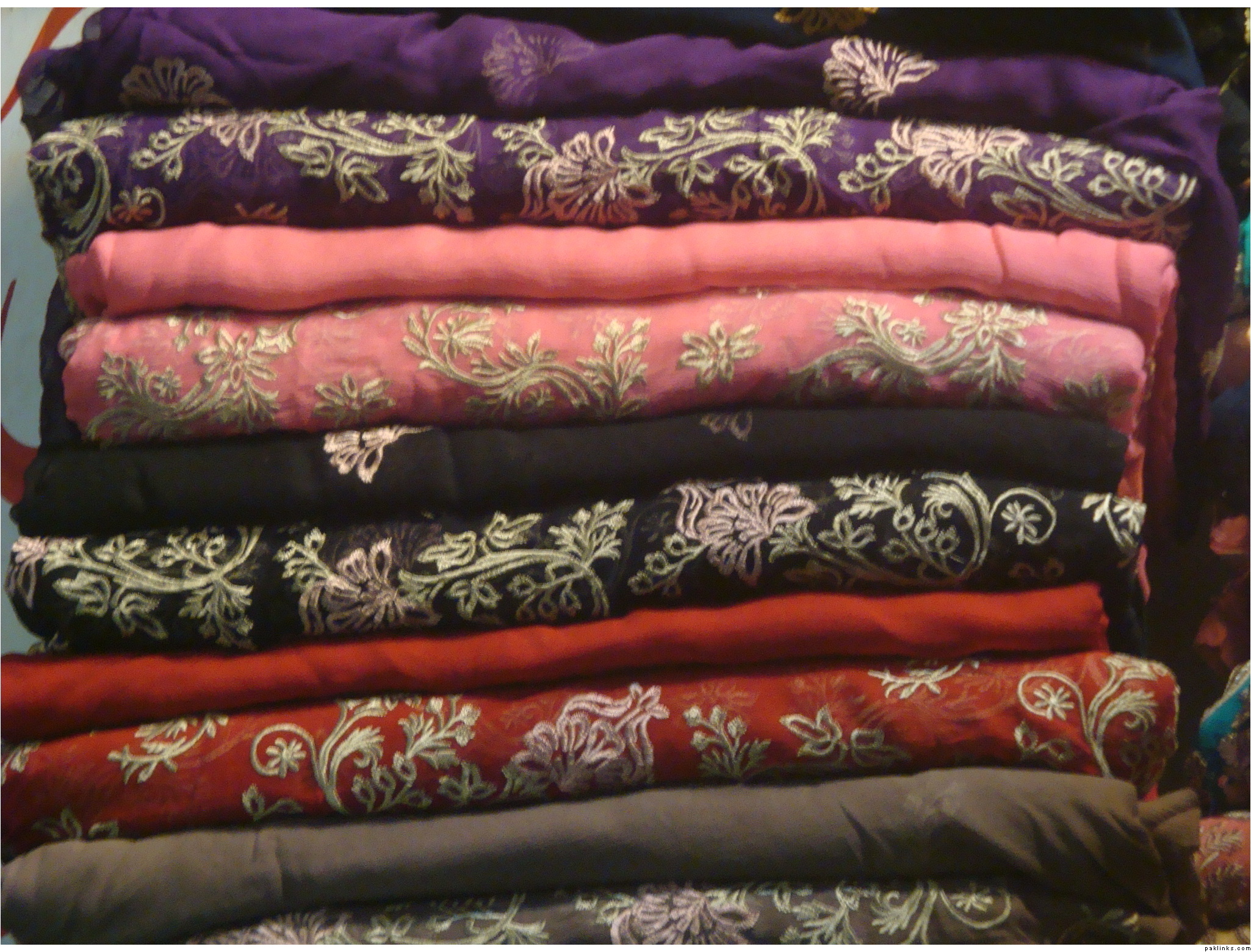Hi guys, I have some unstitched suits in bulk. They are of pure chiffon with embroidery on them. Different colors are available and the material is pure which you should not worry about.