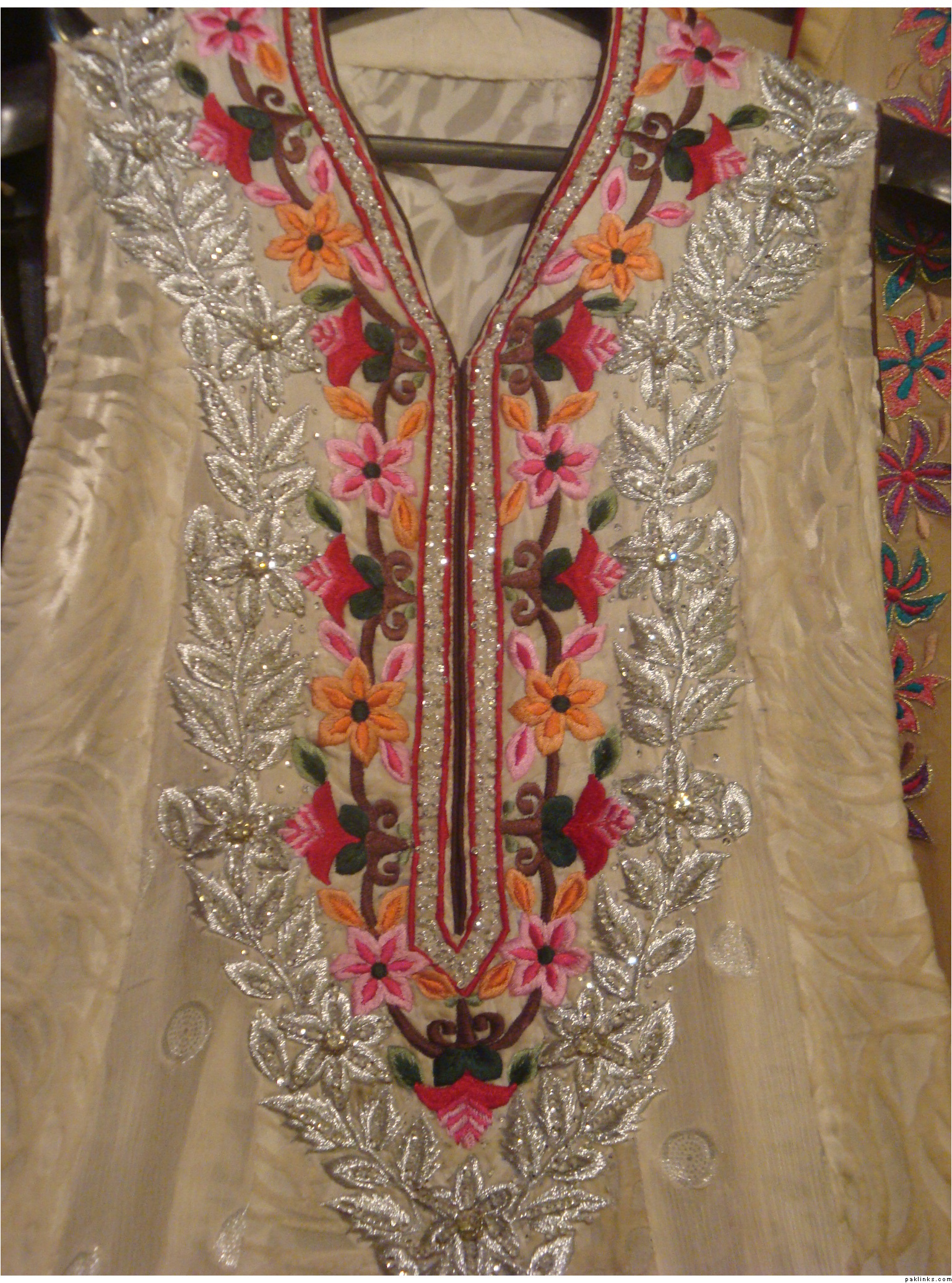 I am attaching the pictures kindly have a look at them. The shirt is full with embroidery work while the dupatta is less dense and has booti (flower) embroidered on it.