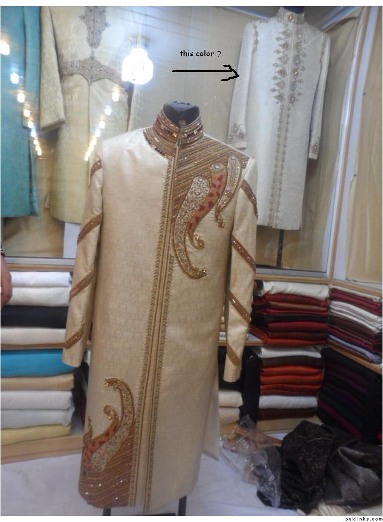 the following image has , in front goldish , in back white sherwani !!