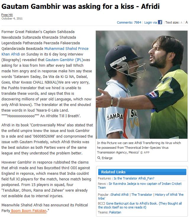 Media reported that he didn’t think Tendulkar and Dravid were match-winners but they didn’t report, and I am assuming the reporter got lazy, that Akhtar in the next couple of paragraphs explains how Sehwag, Gambhir, Yuvraj and Kohli are great for Indian cricket and, with them, Tendulkar and Dravid have learnt a lesson or two and started winning games.