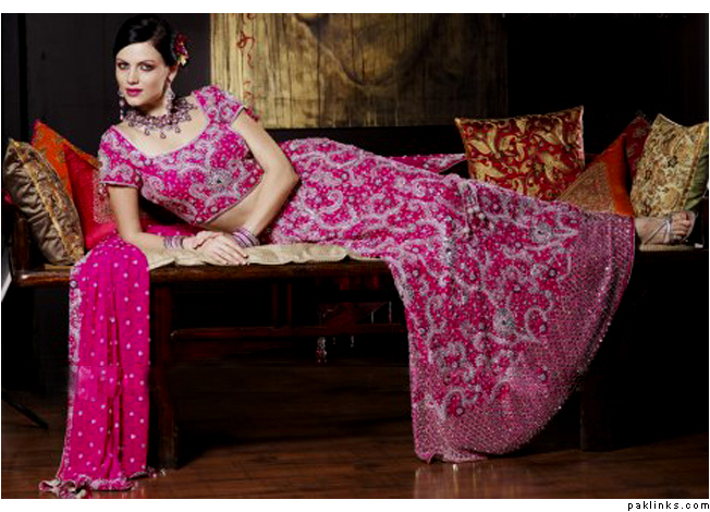 the Designer Neyna has an amazing Hot pink bridal. If you have facebook search for Neyna. and look thru her pink outfits. Theres a peachish pink and she has another Hot pink one too in very reasonable prices.