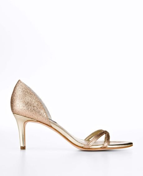 A gold clutch and gold strappy sandals is what I would go for. Closed shoes, peep toes you can save for another day.