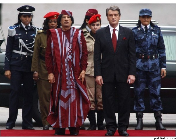 ^ Now don't give our president more ideas! He might actually be looking forward to talking to Gaddafi about personal security issues.