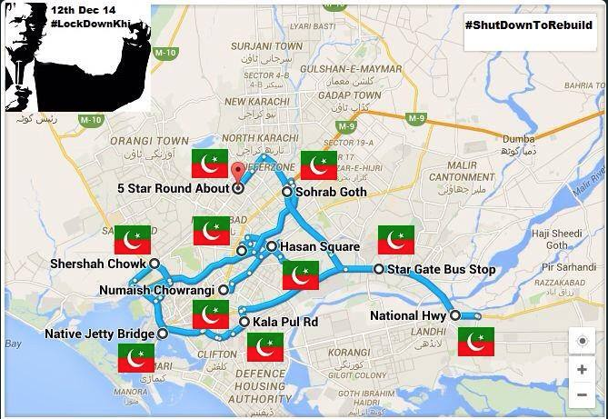 The party had announced it would block 23 main spots of the city, including National Highway, Sohrab Goth, Netty Jetty Bridge, Shershah, Numaish Chowrangi, Sharea Faisal, Kala Pul , Hasan Square, Star Gate and Five Star Chowrangi areas.