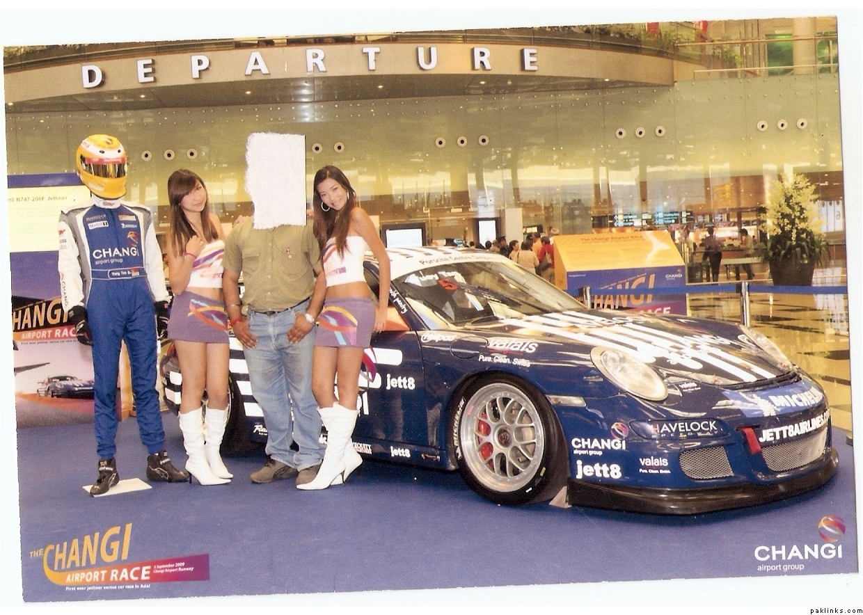 No offence is meant by this photo.I am the person in this.Behind me is the racing car that is going to race with a plane .Thy are going to do a world record performance.These beauties are the models ,and they are there as part of this events promotion.Anyone can take photo with them,for free…