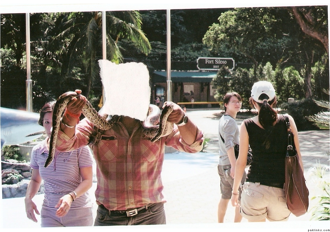 I am at San… with two python snakes and posed for a photograph.(I mean around my neck )