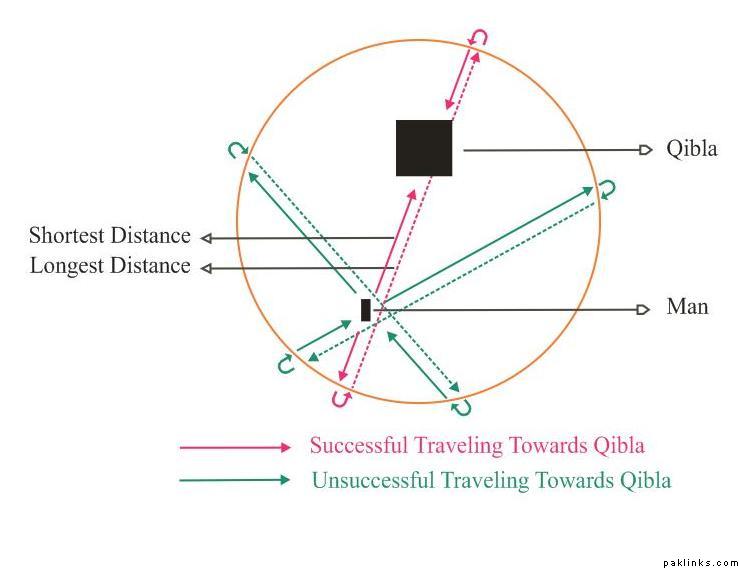 2- the exact opposite direction; which will be longest one to reach Qibla ultimately.