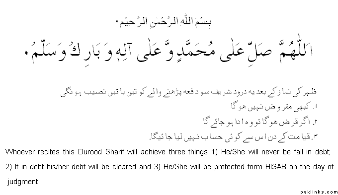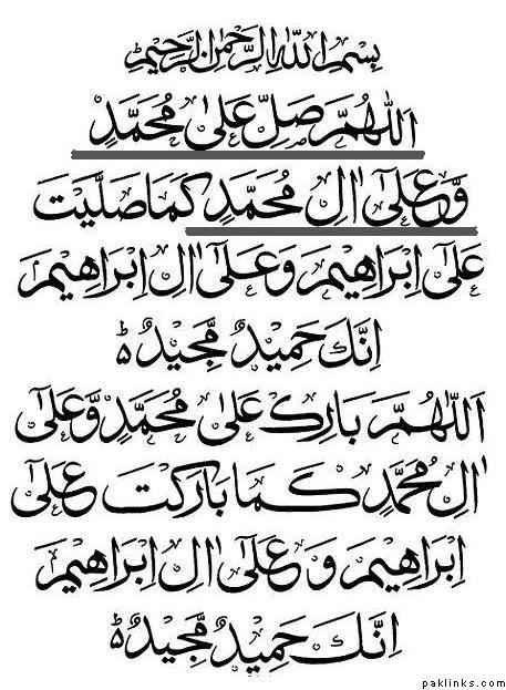 Translation: Oh Allah! Send blessings upon (Holy Prophet) Muhammad and upon the followers of (Holy Prophet) Muhammad