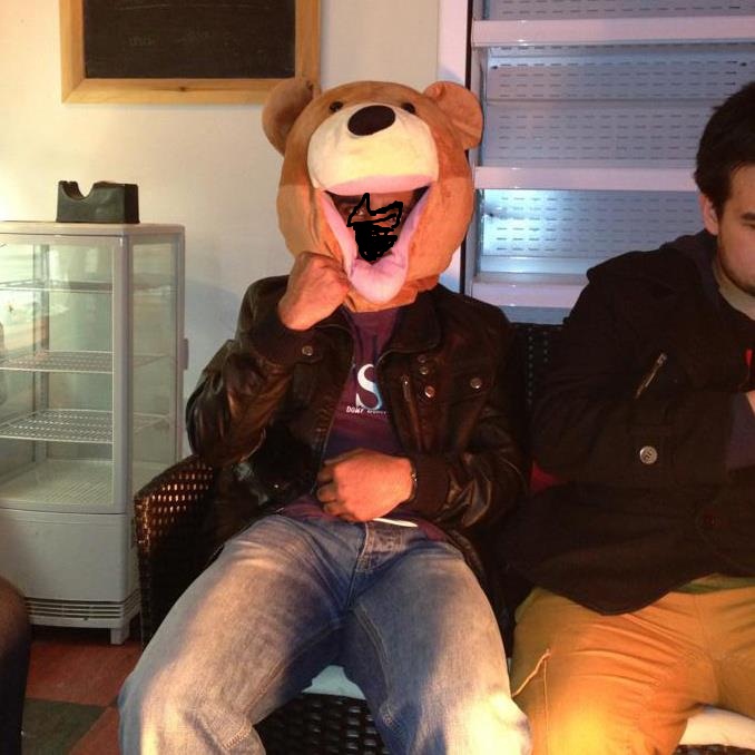 was with high school friends. One of the guys has got a screw loose. This time he brought a bear head with him. We all took turns at looking like complete idiots. Am i not stunning?? ;)