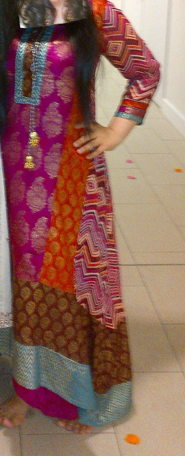 Oops, didn't realise no one knew what the black stone was, its a ring, and it's not black, it's purple but it didn't come out on the pic! And the reason I have two dupattas is because one's for my head and one's for my shoulder, I like wearing two. I dunno why.