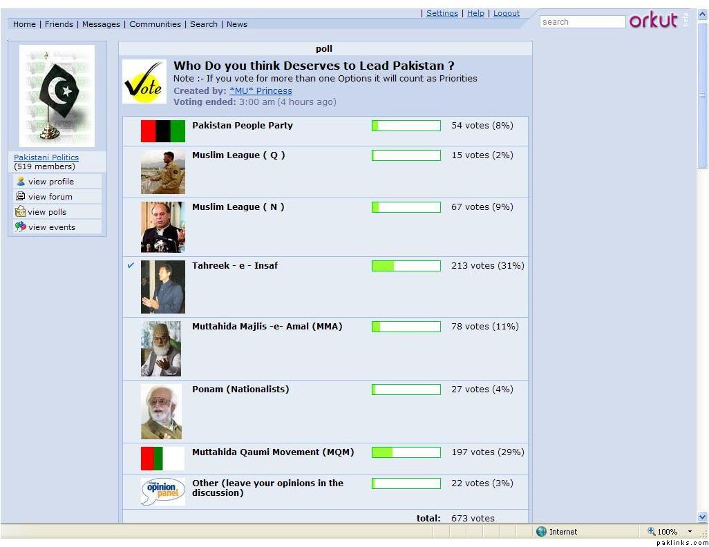 Thats true and I think these online pollings are mostly voted by Pakistani abroad and I am sure mostly Pakistani abroad are in favour of PTI but than it won't help unless Pakistan Election Board start taking votes from overseas Pakistanis which is a dream.