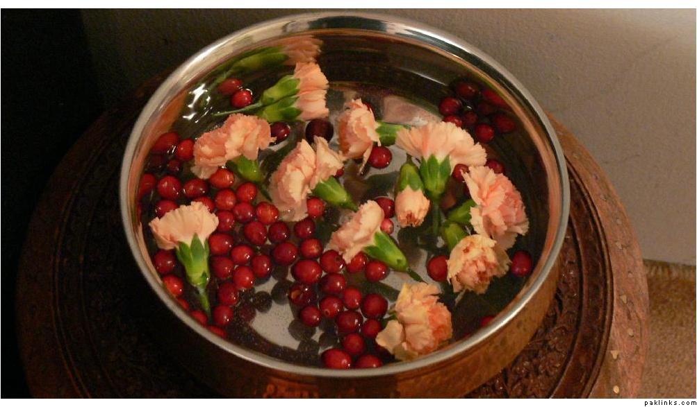 this was the decor i used.. placed bowls of cranberries and orange flowers or cranberries n candles floating in water, and what’s funny is, i caught one of my guests eating the cranberries right out of the bowl, lol