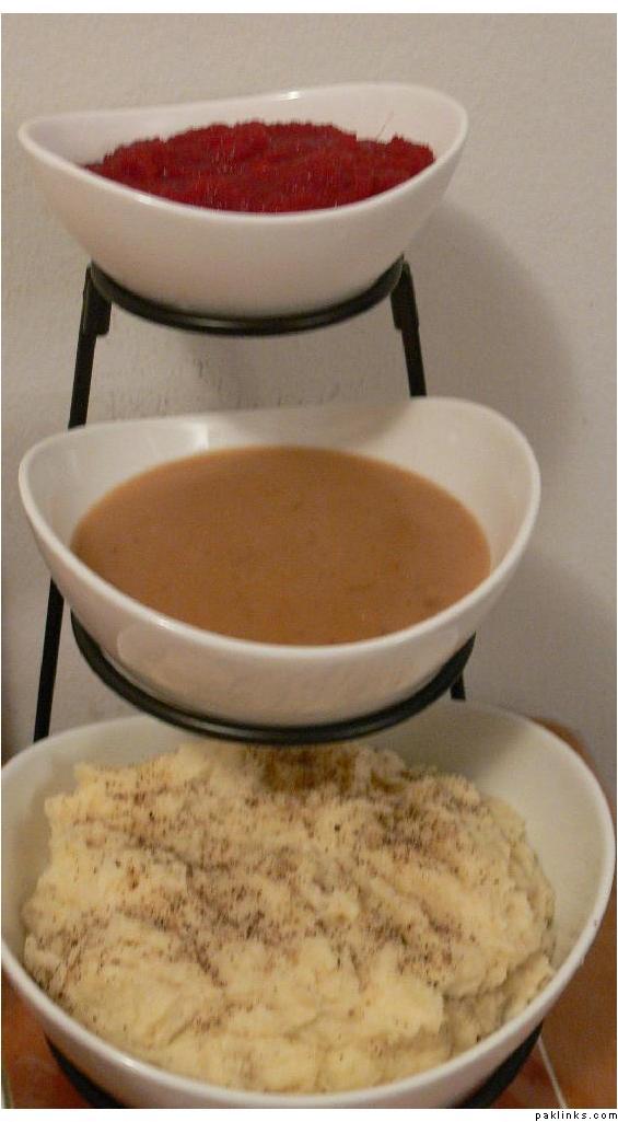 Oo i had a turkey, homemade mashed potatoes (were kinda lumpy but made frm scratch), gravy, mashed turnips, cranberry sauce n beets and stove top stuffing..