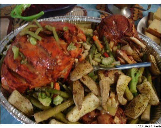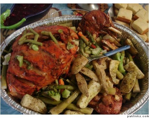 i made pinwheels (tortilla with veggie cream cheese); roast turkey; roasted new potatoes, carrots and apples; cranberry ginger sauce, gravy and mashed potato; stuffing; vegetable manicotti; for dessert : persimmon verrines and chocolate truffles. all homemade and alhumdulillah everything turned out great!