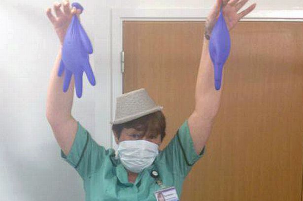 She also posted a picture of herself on the social network site posing in her cleaning uniform – with a disposable bedpan on her head as a hat. The photograph also shows the cleaner wearing a surgical facemask and holding up two inflated medical gloves.