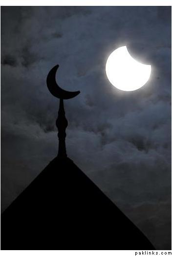 In this photo released by China’s Xinhua News Agency, the minaret of a mosque is silhouetted against the solar eclipse in Yinchuan, capital of northwest China’s Ningxia Hui Autonomous Region, at 8:43 a.m. on Wednesday, July 22, 2009. Scientists, students and nature enthusiasts gathered in open spaces in parts of India Wednesday to watch the longest total solar eclipse of the 21st century, although heavy cloud cover and overnight rains threatened to spoil the party.(AP Photo/Xinhua, Wang Peng)