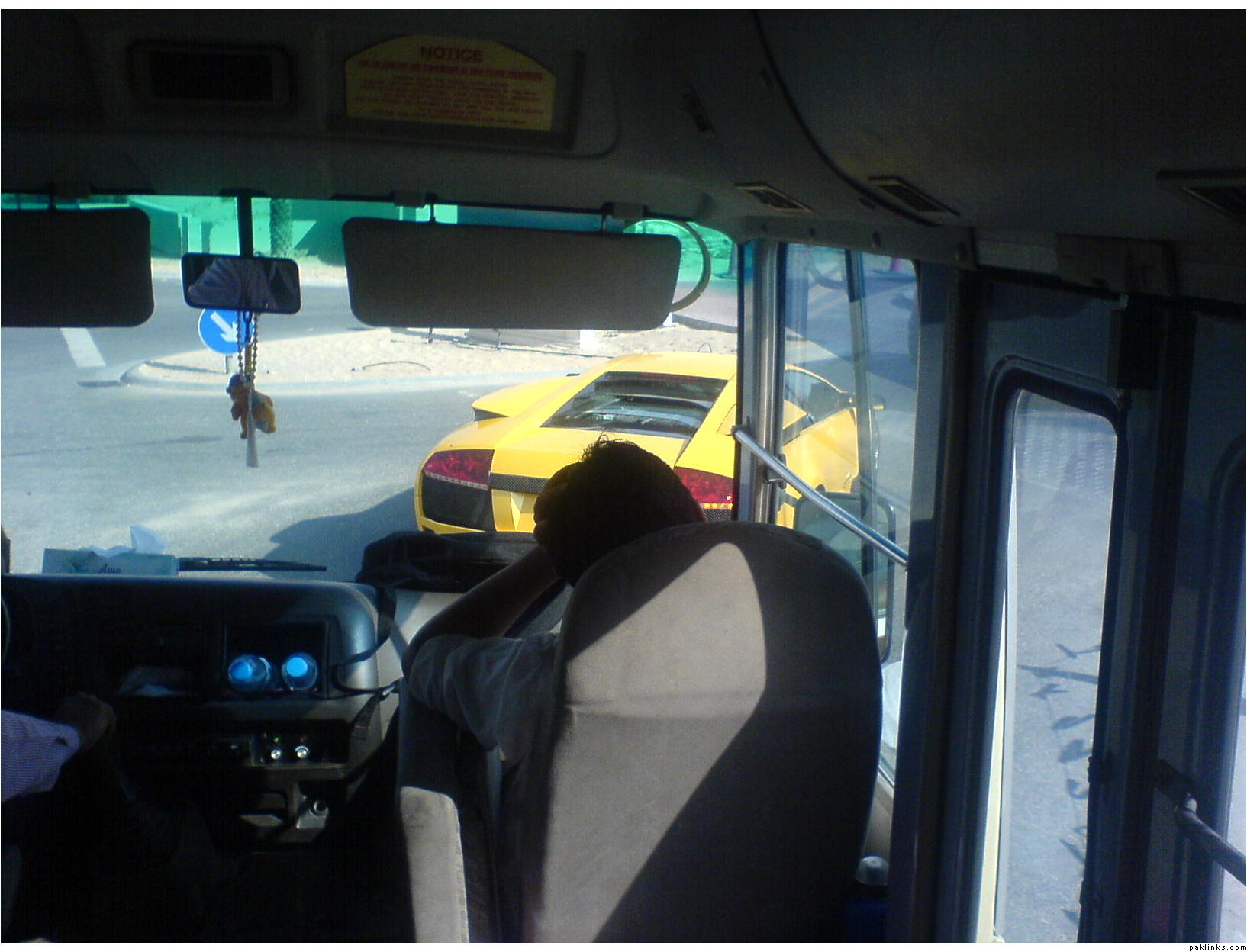 Lamborghini in front of our bus