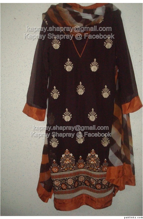 brown: 7750rs- with brown shalwar. Pants can be made on request with no extra charges.